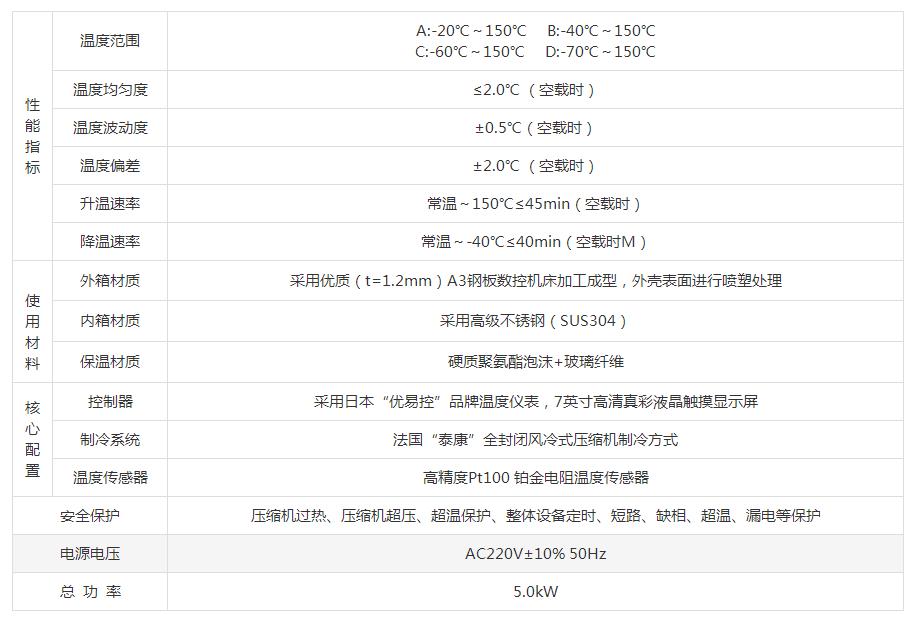 | 降溫速率 | 常溫~-40℃≤40min(空載時M) | ||||||