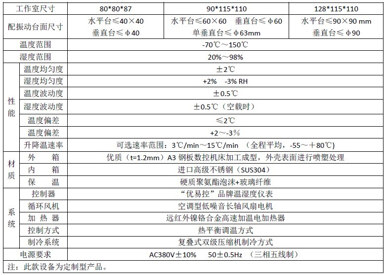 溫濕度振動(dòng)三綜合試驗(yàn)機(jī)主體部分:主體外殼采用優(yōu)質(zhì)A3鋼板并且經(jīng)過噴塑處理,內(nèi)膽采用SUS高級(jí)不銹鋼鏡面板保溫介質(zhì)為超細(xì)玻璃棉;