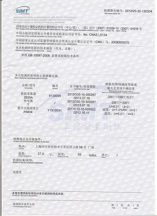 >>鹽霧腐蝕試驗(yàn)箱檢測報告-上海計量院-勝利油田