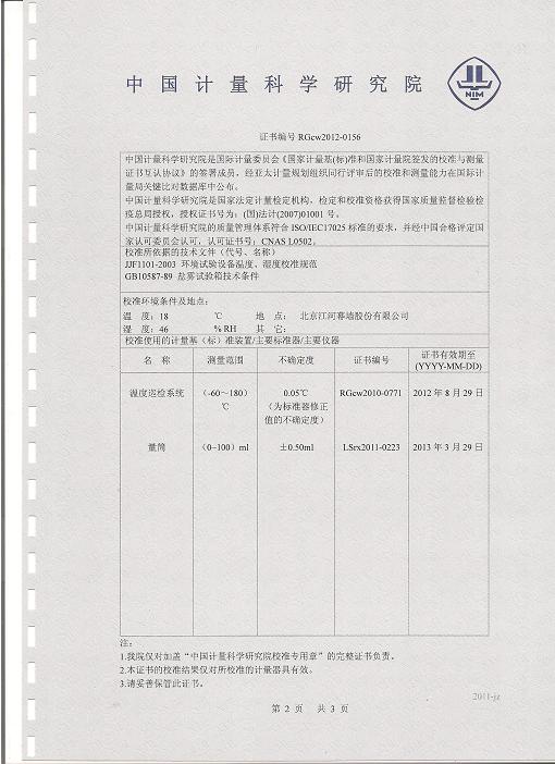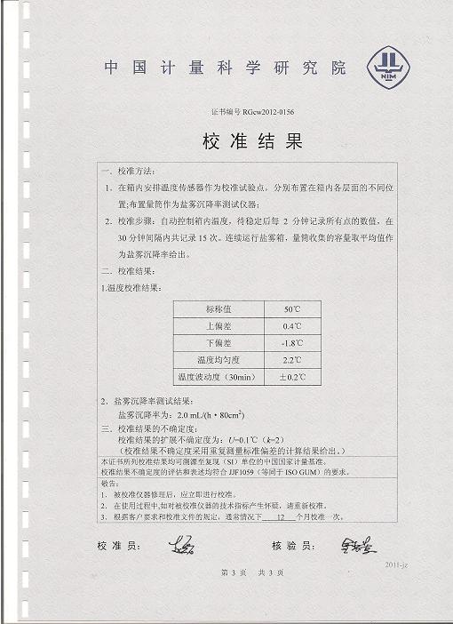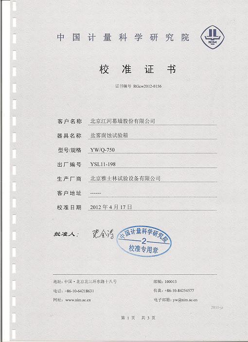 >>鹽霧腐蝕試驗(yàn)箱校準(zhǔn)證書-中國(guó)計(jì)量院-江河幕墻