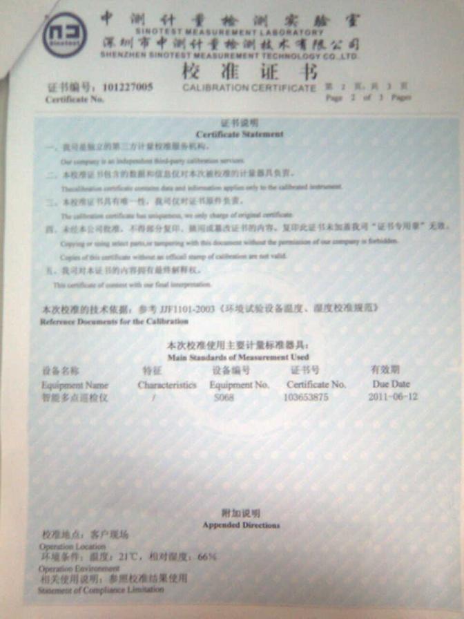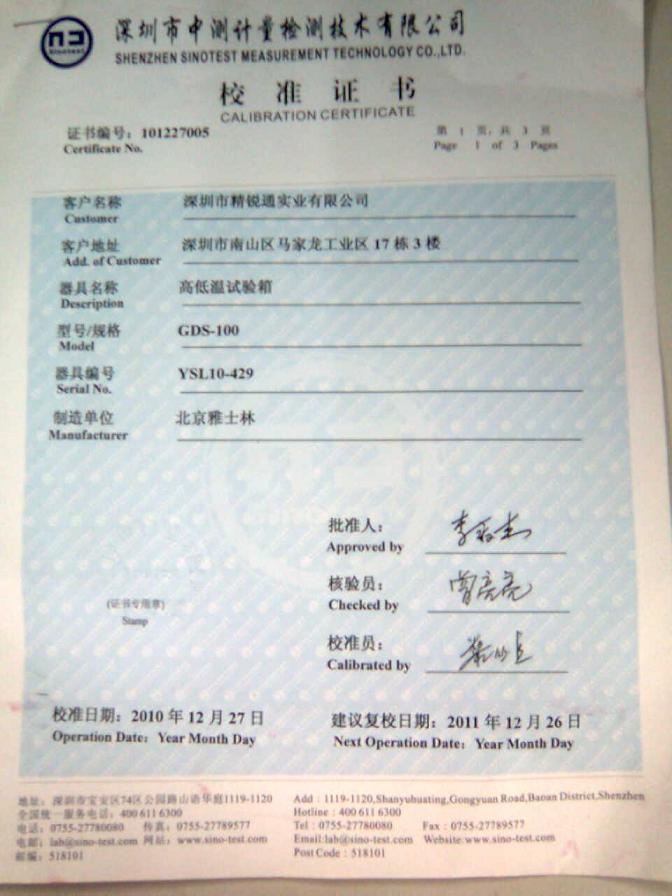 >>高低溫濕熱試驗(yàn)箱校準(zhǔn)證書-深圳中測(cè)計(jì)量-深圳精銳通