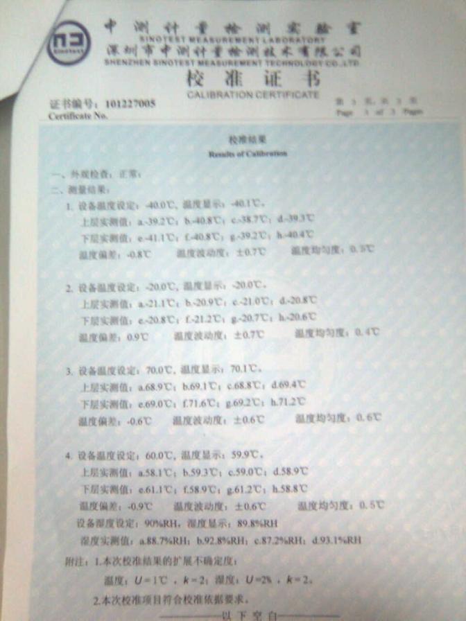 高低溫濕熱試驗(yàn)箱校準(zhǔn)證書-深圳中測(cè)計(jì)量-深圳精銳通