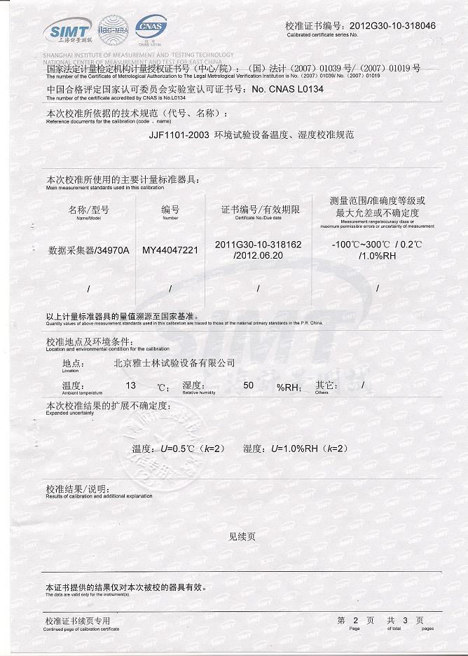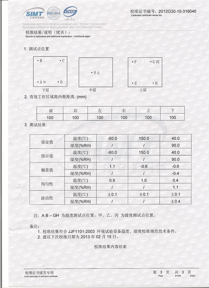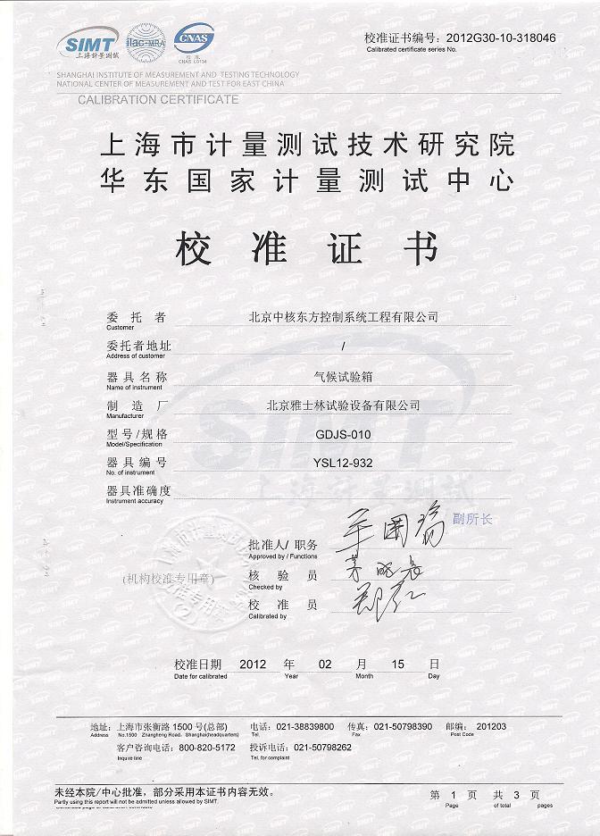 >>氣候試驗(yàn)箱校準(zhǔn)證書(shū)-上海計(jì)量院-中核控制2