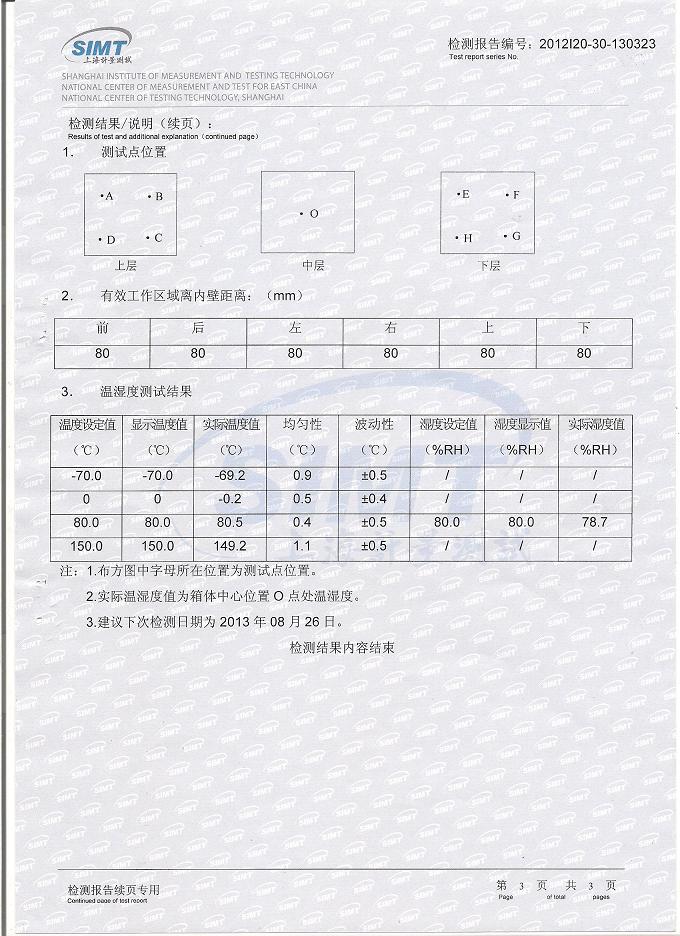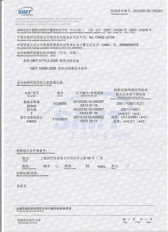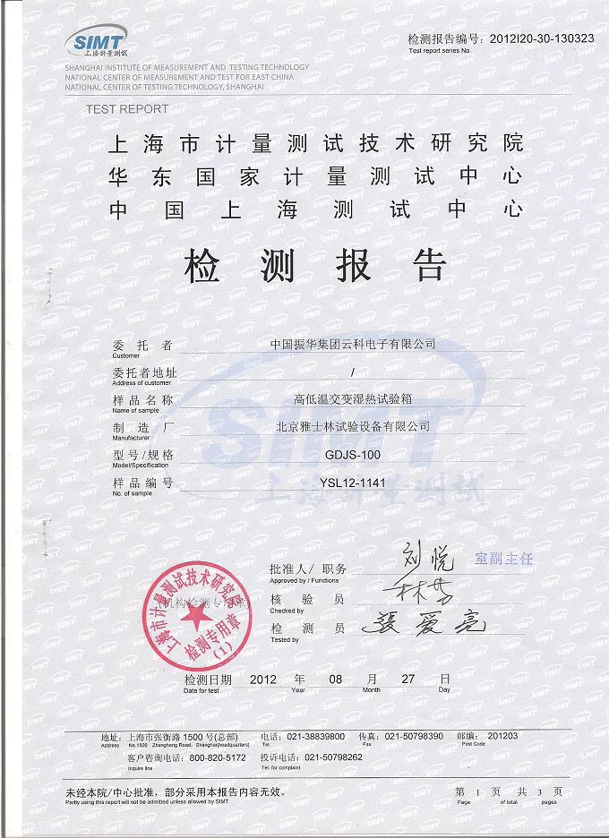 高低溫交變濕熱試驗箱檢測報告-上海計量院-振華集團