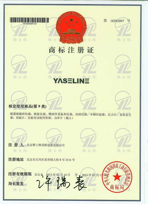 近日,北京雅士林試驗(yàn)設(shè)備有限公司(以下簡稱“雅士林儀器”)注冊的“YASELINE”英文商標(biāo),獲得國家工商行政管理總局商標(biāo)局注冊通過。此次注冊通過的“YASELINE”商標(biāo)為雅士林儀器近年來全力打造高端試驗(yàn)箱品牌。 多年來,雅士林儀器堅(jiān)持貫徹品牌戰(zhàn)略,進(jìn)行全方位的市場開拓,全力打造“雅士林試驗(yàn)箱”高端品牌。雅士林儀器實(shí)施以品牌求發(fā)展的品牌經(jīng)營戰(zhàn)略,本著“品質(zhì)卓越,盡善盡美”的質(zhì)量理念,強(qiáng)化員工素質(zhì),加強(qiáng)服務(wù)流程的完善和服務(wù)技能的提升,建立以顧客為導(dǎo)向的服務(wù)系統(tǒng)和服務(wù)標(biāo)準(zhǔn)。注重產(chǎn)品技術(shù)創(chuàng)新,追求高品質(zhì)的產(chǎn)品研發(fā),截至目前公司共獲得國家發(fā)明、實(shí)用新型與外觀專利多項(xiàng),引領(lǐng)了國內(nèi)環(huán)境試驗(yàn)設(shè)備行業(yè)技術(shù)創(chuàng)新的高度,廣大用戶對“雅士林試驗(yàn)箱”品牌信賴有加,市場占有率逐年提高。 YASELINE商標(biāo)的取得,一方面有利于公司加強(qiáng)對品牌及注冊商標(biāo)的保護(hù),是對雅士林儀器品質(zhì)實(shí)力、品牌價(jià)值、品牌建設(shè)成果的肯定,也是對雅士林儀器資產(chǎn)規(guī)模、市場占有率、品牌影響力、社會口碑等綜合實(shí)力的高度肯定;另一方面對于提高公司品牌和市場知名度,打造高端環(huán)試品牌,開拓國際市場等具有積極意義。