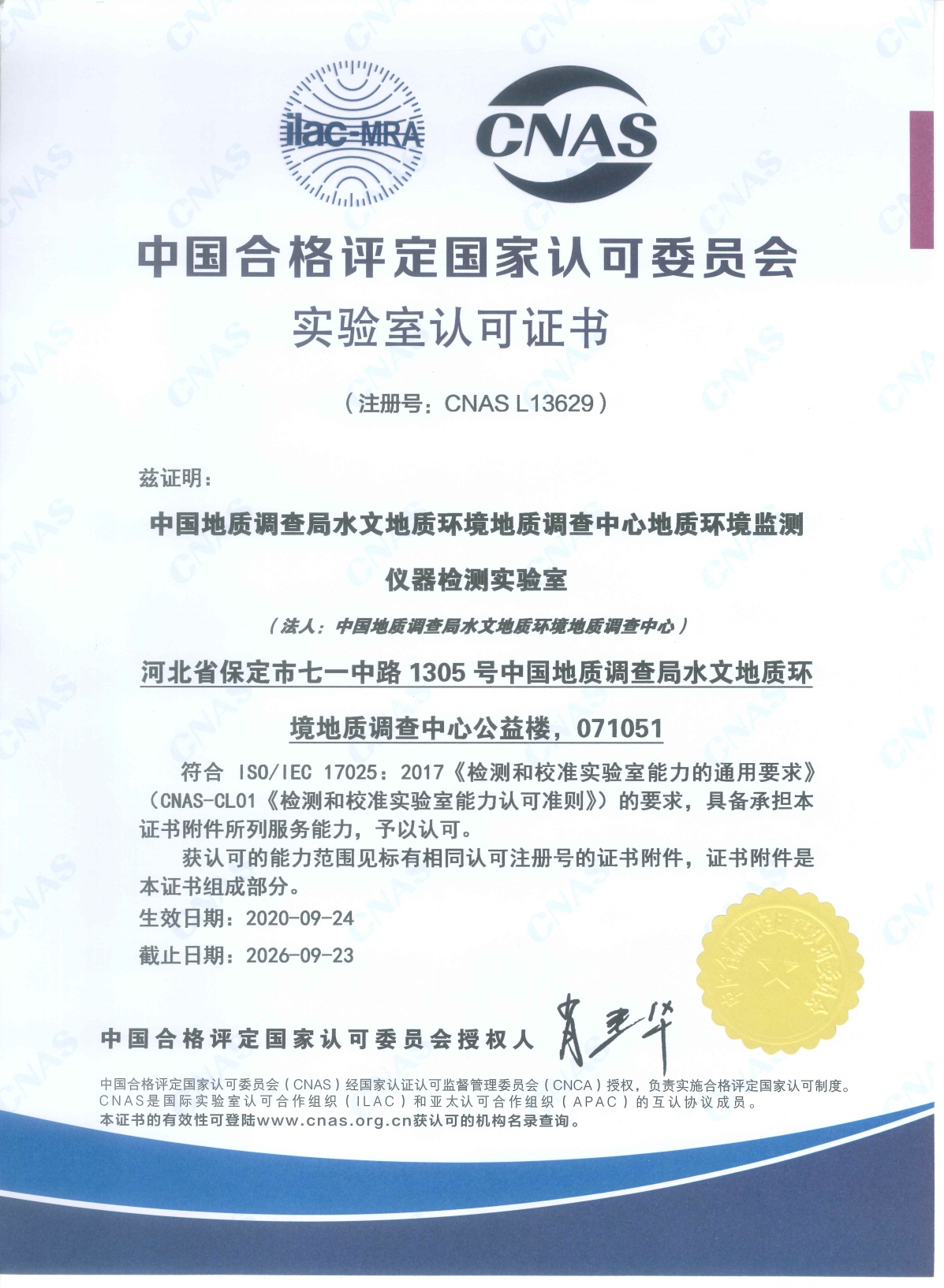 熱烈祝賀自然資源部中國地質(zhì)調(diào)查局水文地質(zhì)環(huán)境地質(zhì)調(diào)查中心地質(zhì)環(huán)境監(jiān)測儀器檢測實(shí)驗(yàn)室順利通過CNAS現(xiàn)場評審,并正式取得由中國合格評定國家認(rèn)可委員會(CNAS)頒發(fā)的實(shí)驗(yàn)室認(rèn)可證書。雅士林全體員工表示熱烈祝賀,同時(shí)也希望能夠加強(qiáng)和各個(gè)新老客戶之間的合作。